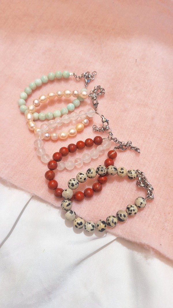 Son pulseras de acero quirúrgico con maxi esferas de piedra de 17cms extensible hasta 21cms!