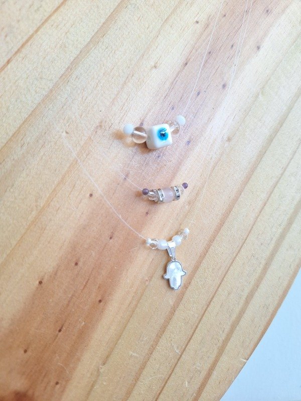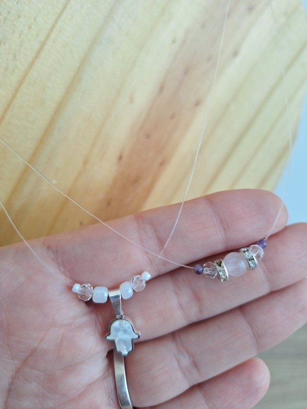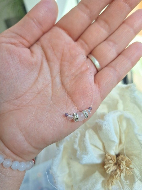 Collar de tanza invisible de 45cms con piedra y mostacillas o dije.