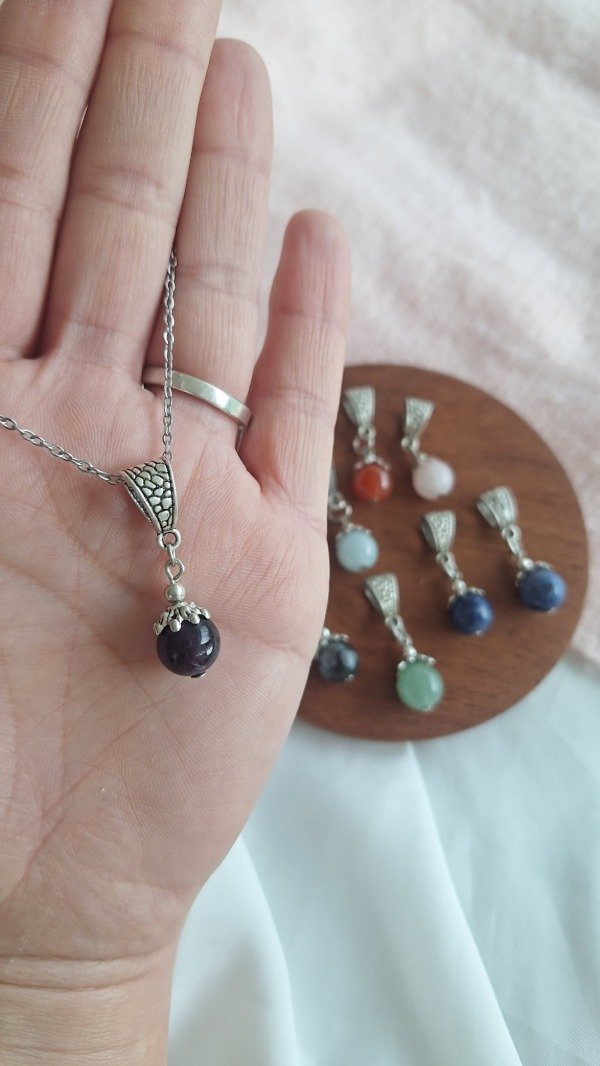 Cada dije está elaborado con bolita piedra natural de 8mm y viene acompañado por una cadenita de acero quirúrgico de 50 cm, ideal para usar todos los días 😍