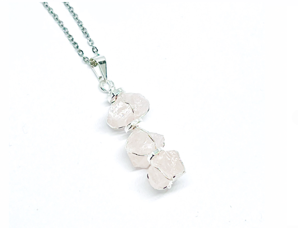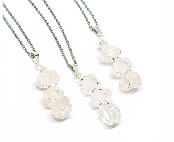 Dije en bruto triple de Cuarzo Rosa