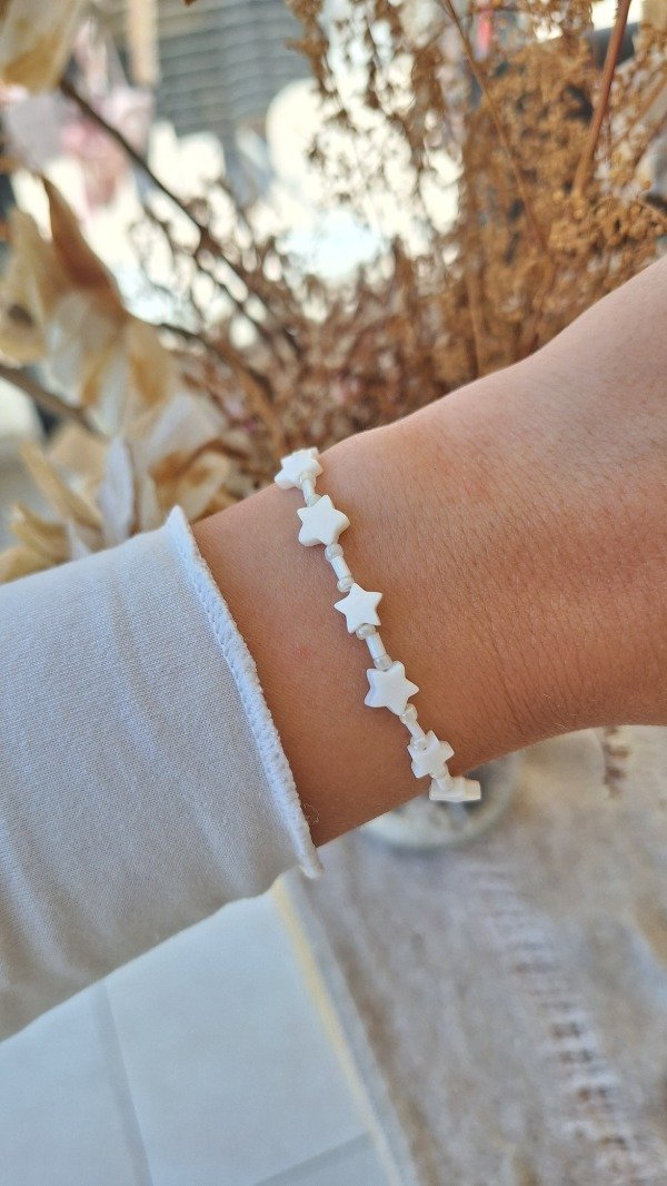 • 1 pulsera PEDÍ UN DESEO de estrellitas de nácar y acero quirúrgico regulable