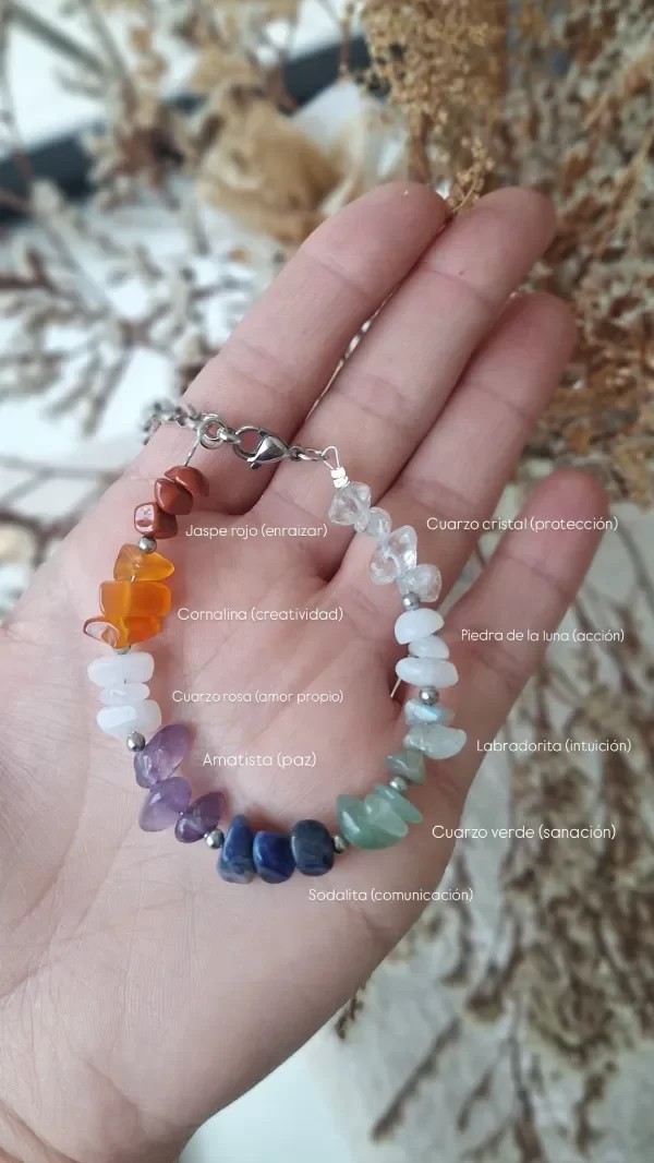 Hecha en acero quirúrgico, con 9 piedras naturales diferentes (podes ver en la foto su nombre y sus propiedades!)